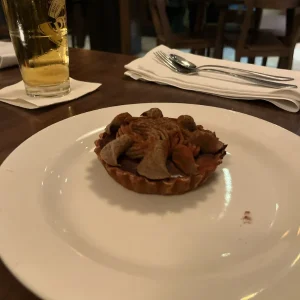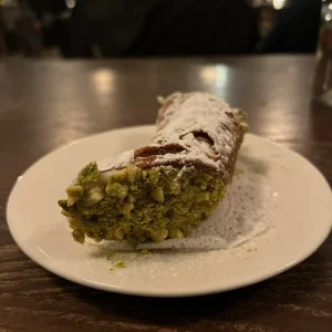 Geen etentje zonder een dessert. Bij een goed Italiaans restaurant is het dessert misschien wel het beste wat je geserveerd zal krijgen. La Pizza bevestigde onze verwachting. Op ons bordjes onder andere een Panna Cotta van vanilleroompudding met sinaasappelcrime en een Cannolo die precies de smaak had zoals we ‘m ooit eerder op Sicilië aten. De pistache noten, ricotta en sinaasappel die in het krokant gebakken deegje op tafel kwam was ook een van die van een restaurantbezoek een mooie afsluiter maakt. Ook zo’n mooi einde van een fijne avond was de Crostata del giorna. Een machtig dessert van chocolade, espresso en hazelnoot.