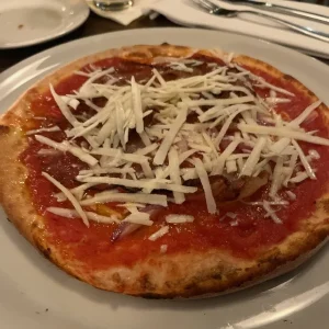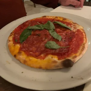 Zo bestelden we de Pizza all’amatriciana. Een pizza die bestaat uit een tomatensaus, rode ui, wangspek, chilipeper met daar bovenop royaal gestrooide Pecorino-kaas. Ook lieten we de Pizza con salsiccia komen. Deze zeer pittige pizza bestaat uit tomatensaus, mozzarella, Ventricina-worst, tijm en basilicum. Vanwege de smaak hadden we misschien toch de grote variant moeten kiezen om net iets langer te kunnen genieten!